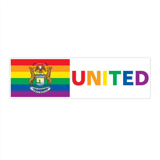 Michigan Rainbow Pride Flag "UNITED" Bumper Sticker