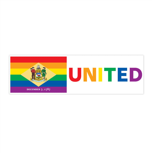 Delaware Rainbow Pride Flag "UNITED" Bumper Sticker