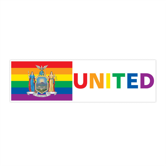 New York Rainbow Pride Flag "UNITED" Bumper Sticker