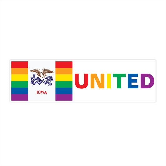Iowa Rainbow Pride Flag "UNITED" Bumper Sticker