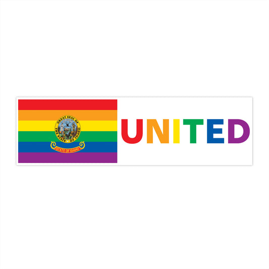 Idaho Rainbow Pride Flag "UNITED" Bumper Sticker