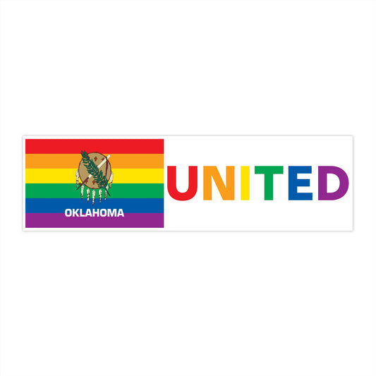 Oklahoma Rainbow Pride Flag "UNITED" Bumper Sticker