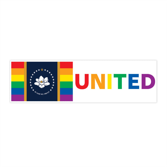 Mississippi Rainbow Pride Flag "UNITED" Bumper Sticker