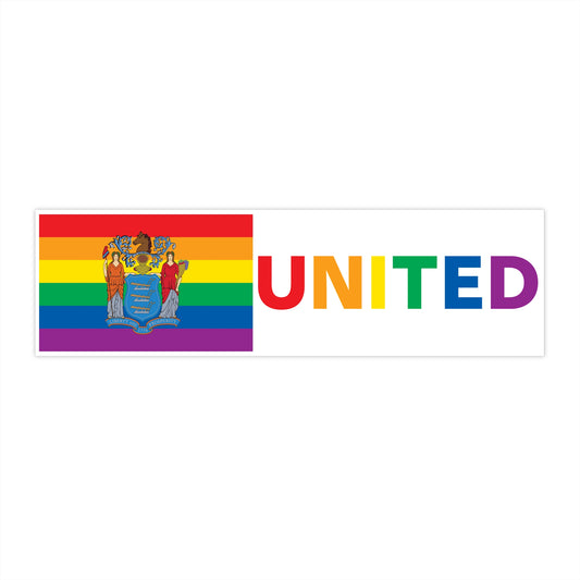 New Jersey Rainbow Pride Flag "UNITED" Bumper Sticker