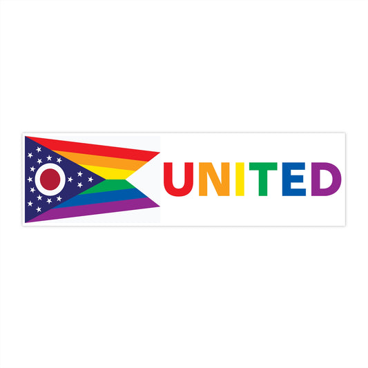 Ohio Rainbow Pride Flag "UNITED" Bumper Sticker