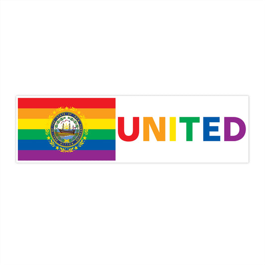 New Hampshire Rainbow Pride Flag "UNITED" Bumper Sticker