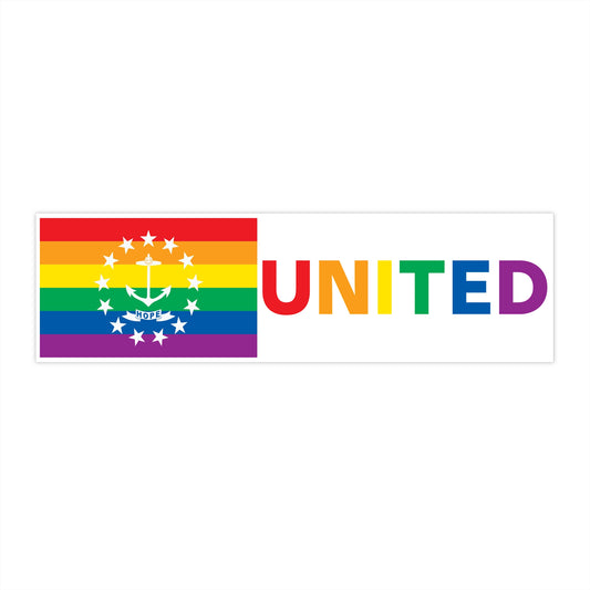 Rhode Island Rainbow Pride Flag "UNITED" Bumper Sticker