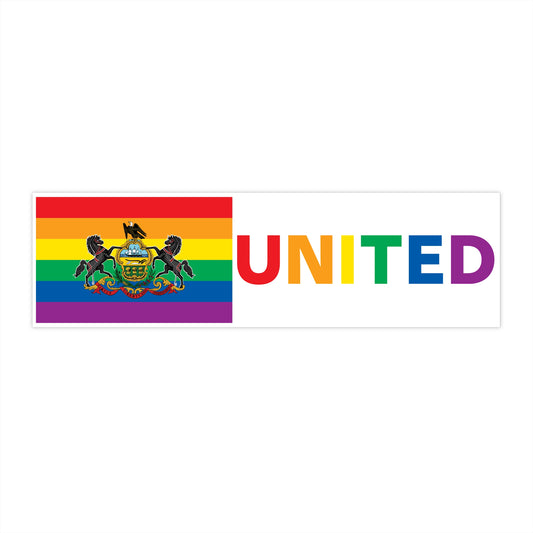 Pennsylvania Rainbow Pride Flag "UNITED" Bumper Sticker