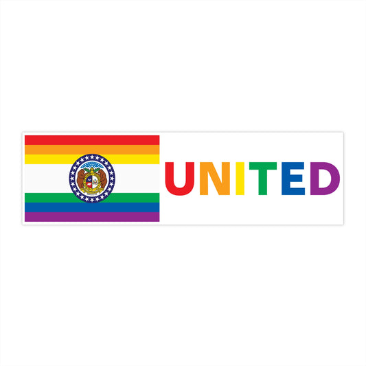 Missouri Rainbow Pride Flag "UNITED" Bumper Sticker