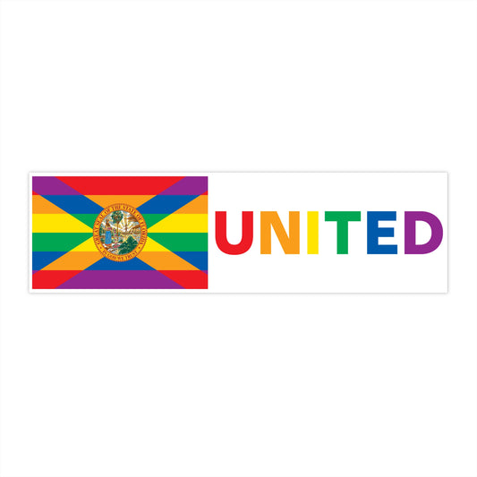Florida Rainbow Pride Flag "UNITED" Bumper Sticker