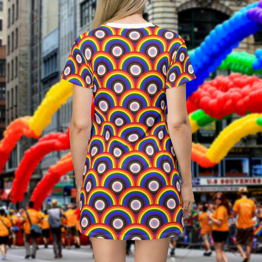 Progress Pride T-Shirt Dress - bullseye pattern deco