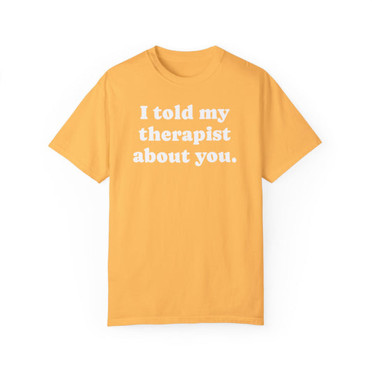 I told my therapist about you T-Shirt - Various colors with White Deco