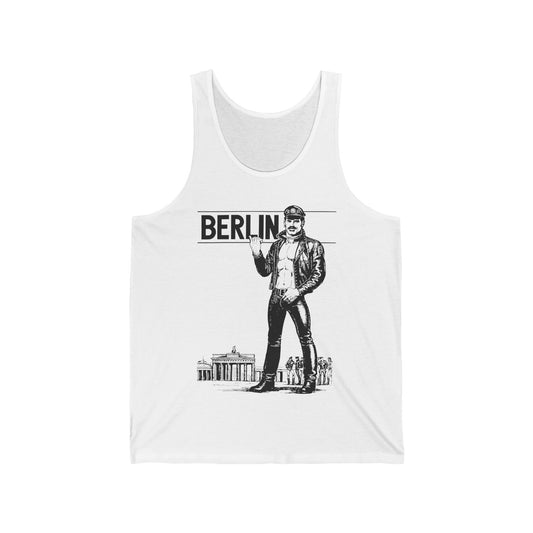 BERLIN Leather Rebel Tank Top: Black on White — Queer History & Iconic Freedom Statement