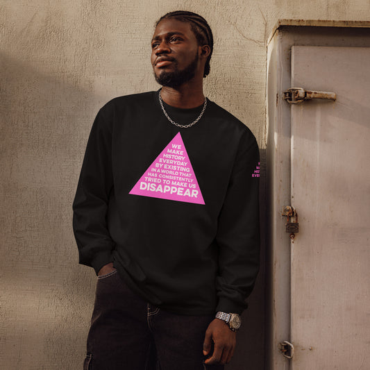 We Make History Every Day Premium hHeavyweight Long Sleeve Shirt - Pink Deco on Black or Off-White