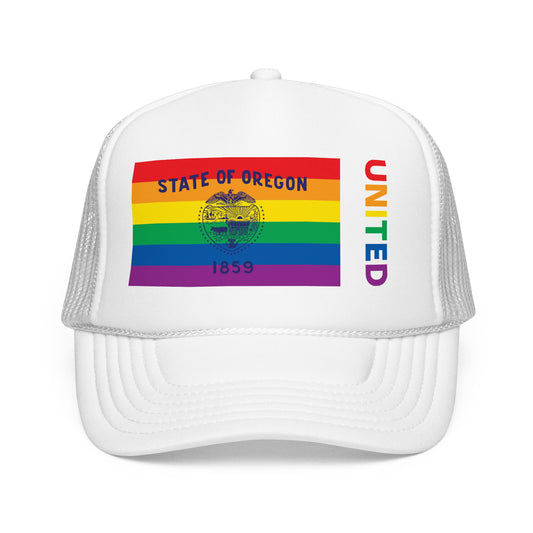 Oregon Rainbow Pride Flag "UNITED" Printed Foam Trucker Hat, Several Color Options