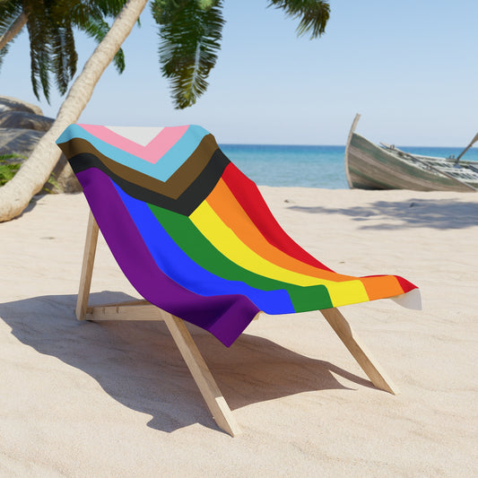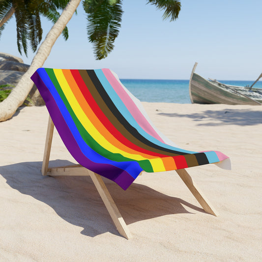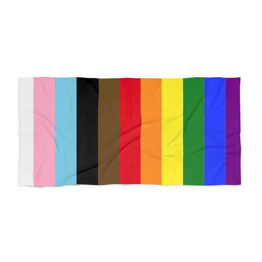 Progress Pride Flag Beach Towel - horizontal stripe deco