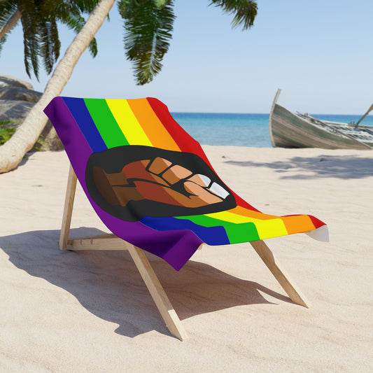 Queer People of Color (POC) Pride Flag Beach Towel - vertical deco