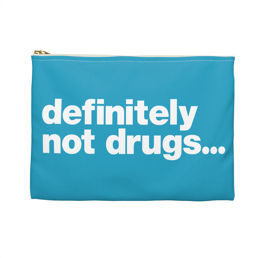 'Definitely Not Drugs' Funny Accessory Pouch - White Deco on Cyan