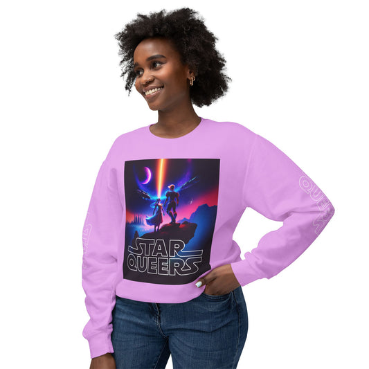 STAR QUEERS Graphic Universal Lightweight Crewneck Sweatshirt - Black and Neon Violet