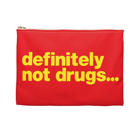 'Definitely Not Drugs' Funny Accessory Pouch - Yellow Deco on Red