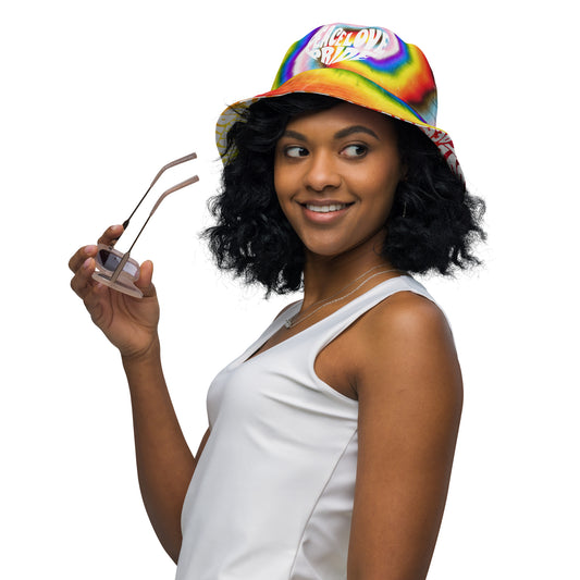 PEACE LOVE PRIDE Reversible Bucket Hat - progress pride tie-dye deco