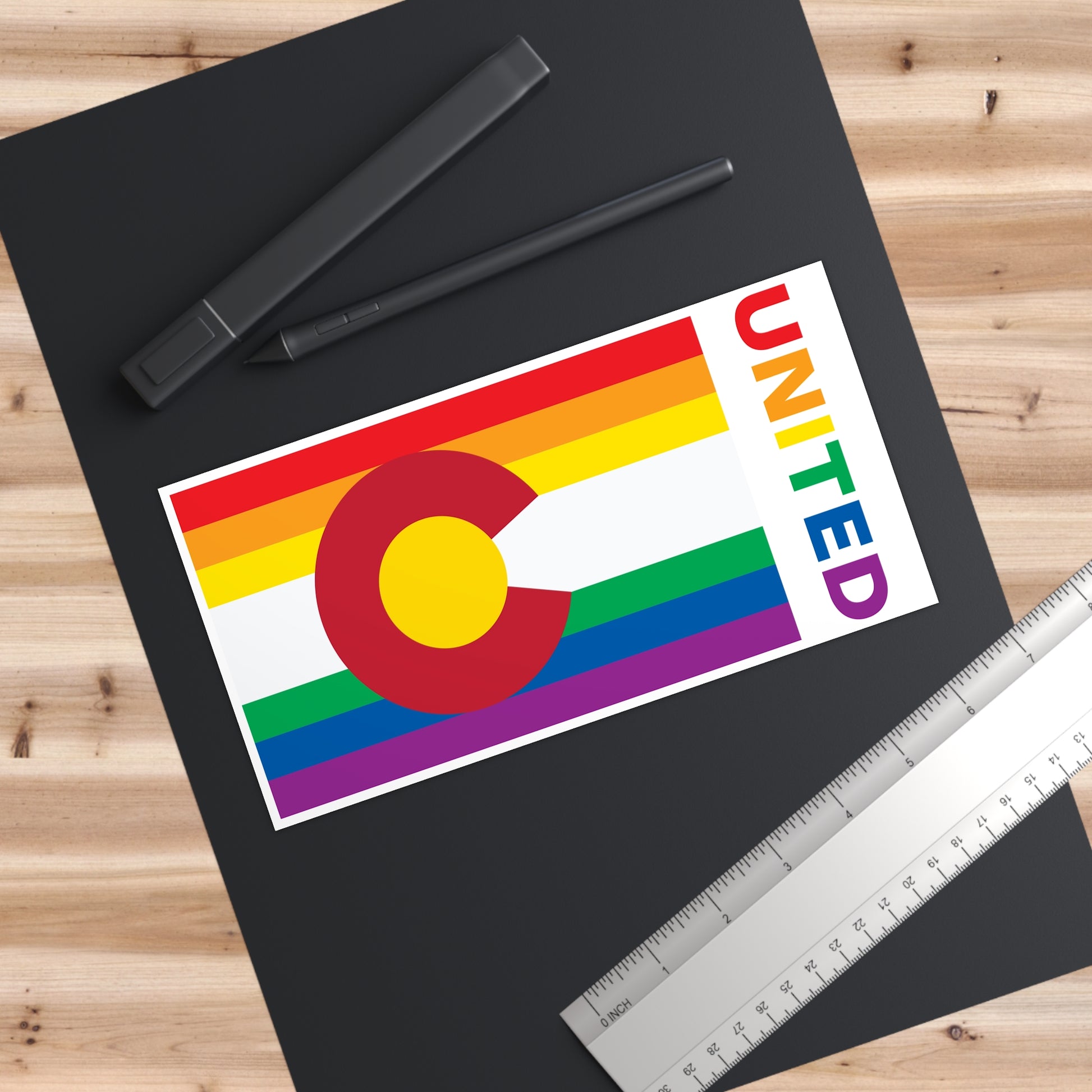 Colorado Rainbow Pride Flag "UNITED" Bumper Sticker