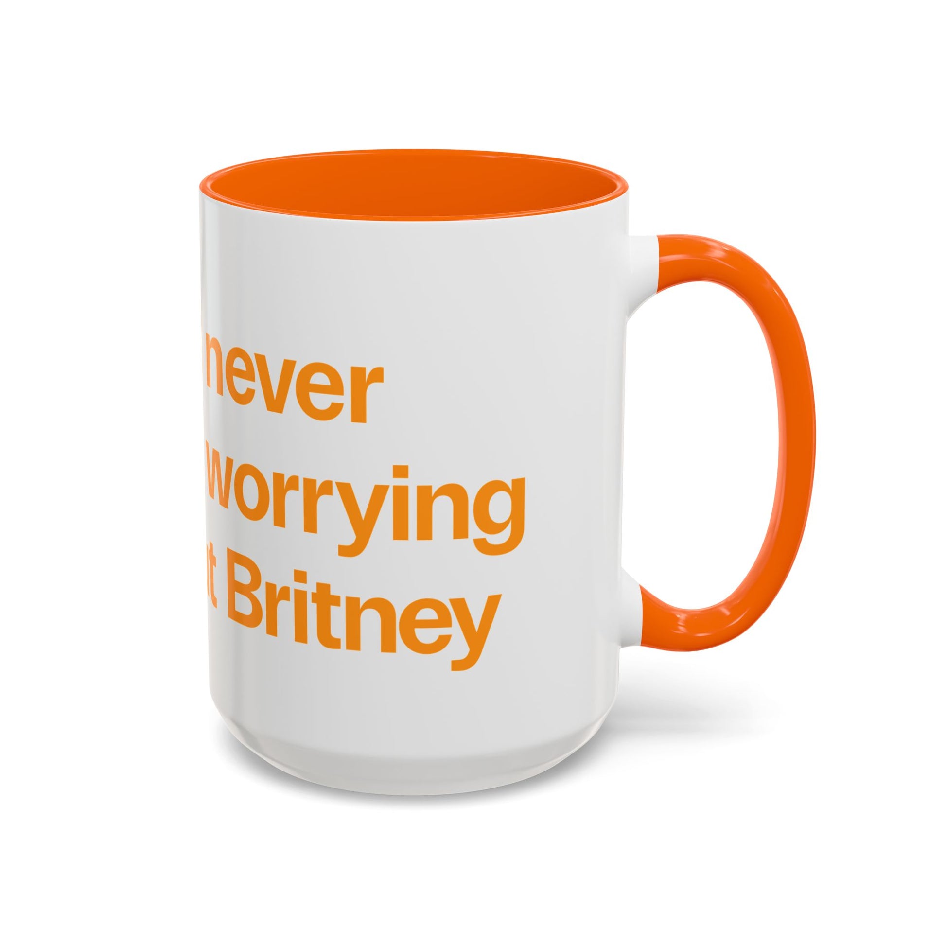I will never stop worrying about Britney, Britney Spears, White with Orange Accent Coffee Mug (11, 15oz)