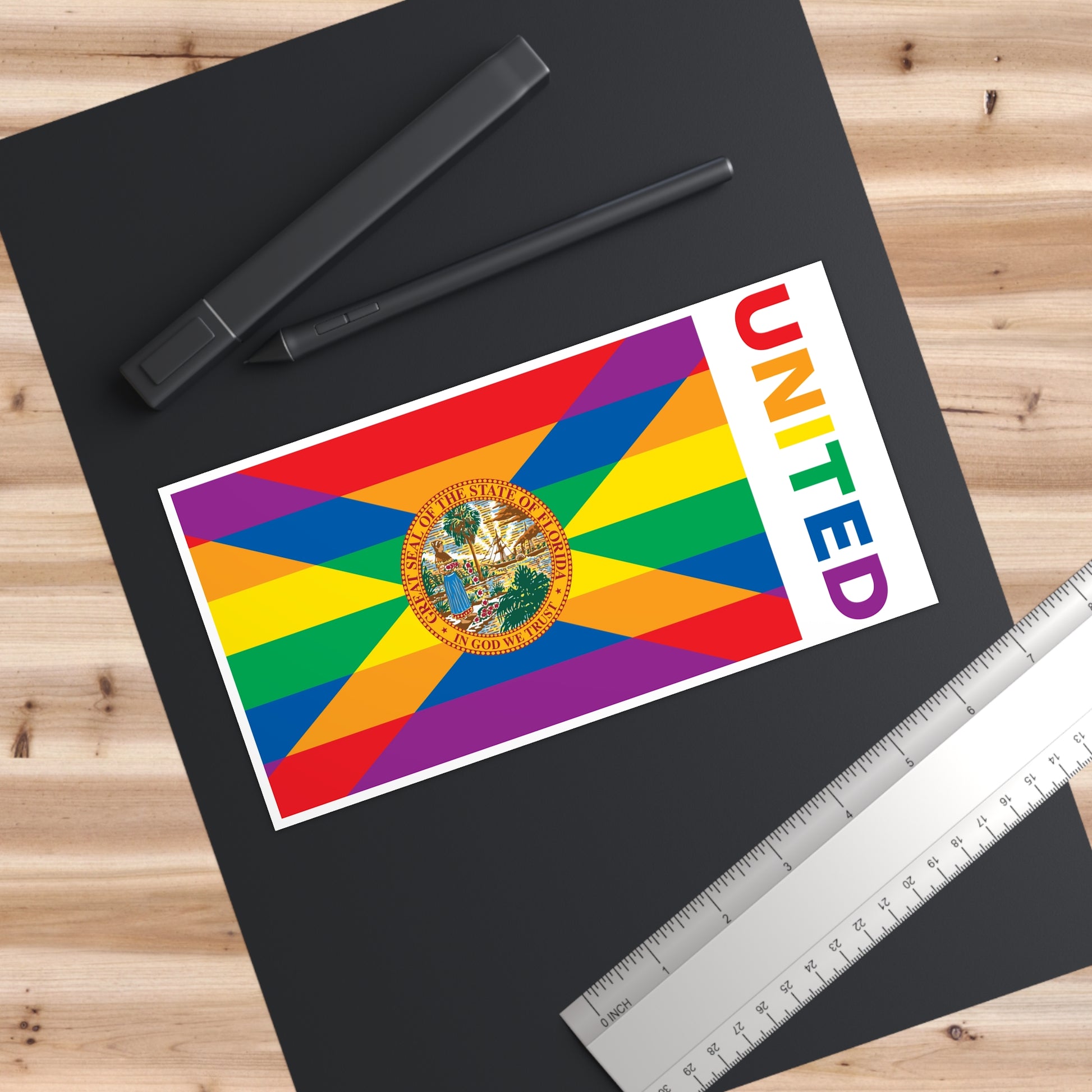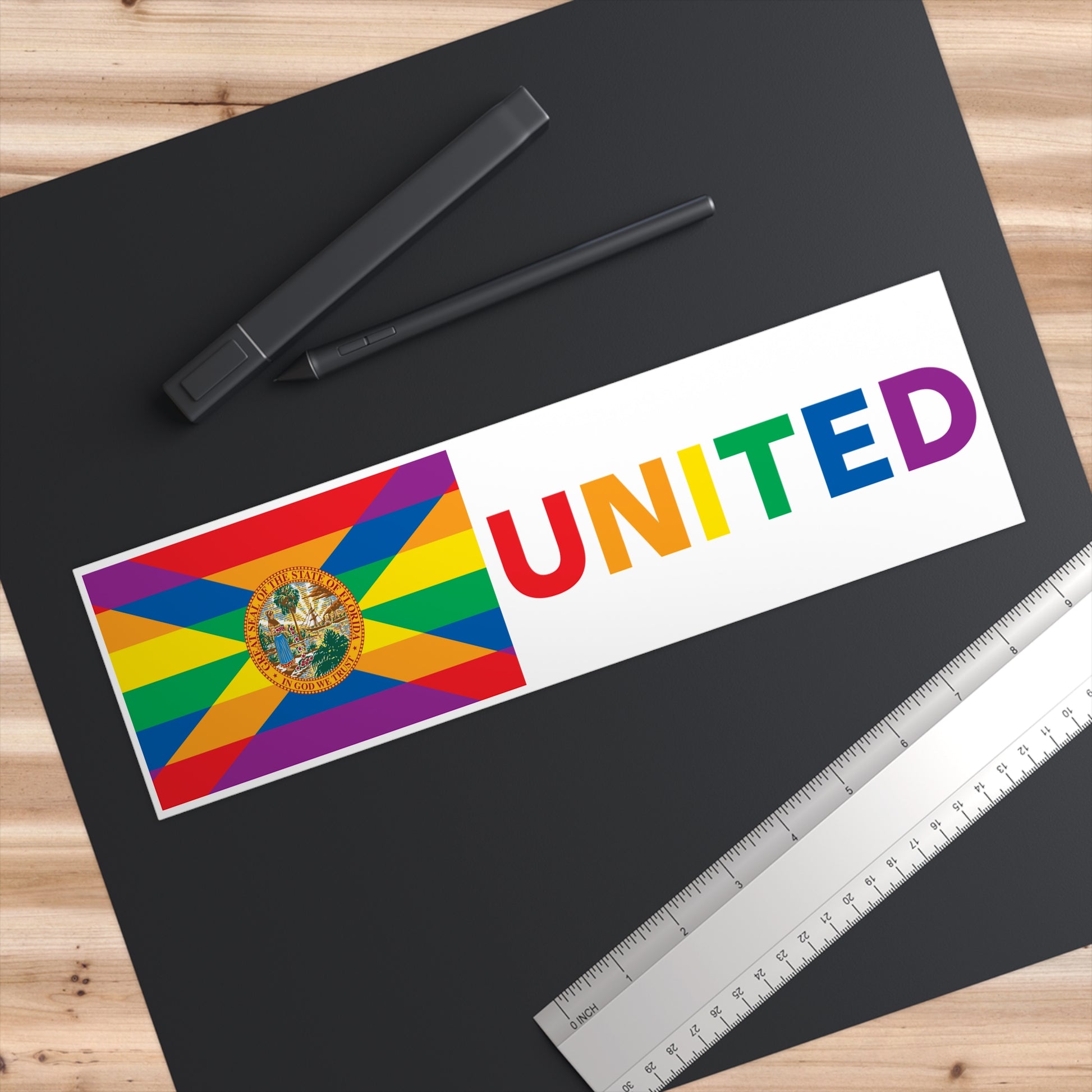 Florida Rainbow Pride Flag "UNITED" Bumper Sticker