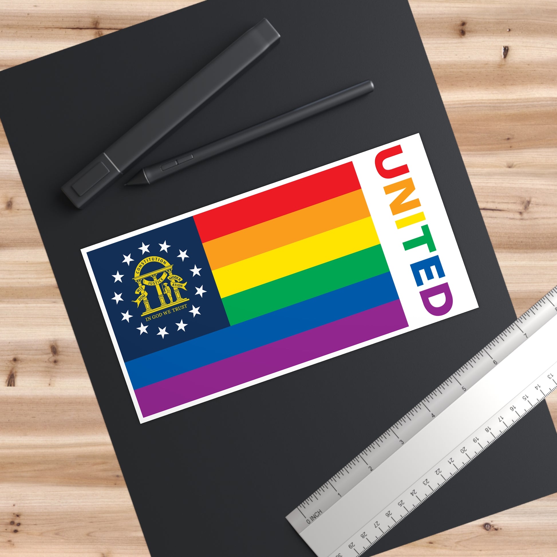 Georgia Rainbow Pride Flag "UNITED" Bumper Sticker