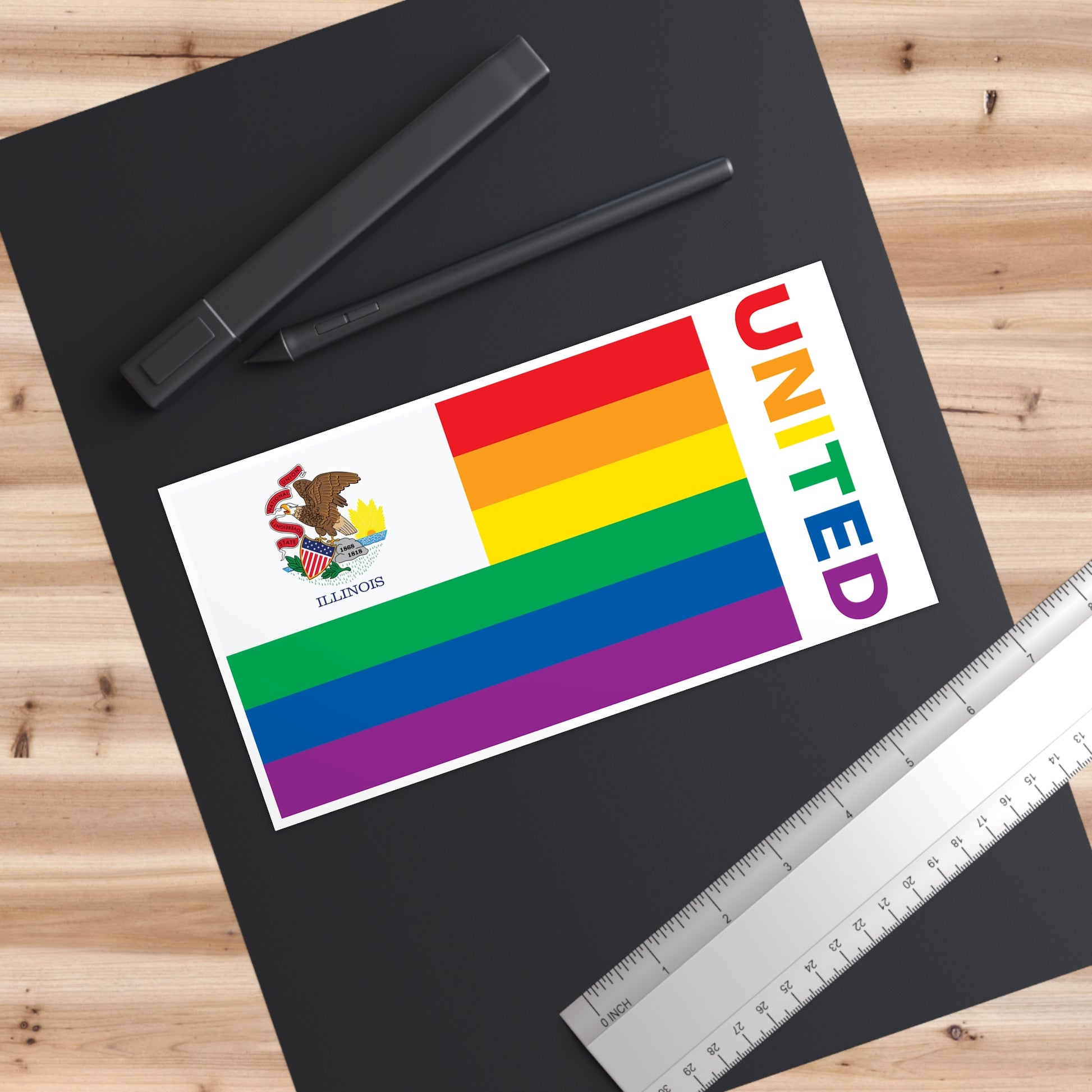 Illinois Rainbow Pride Flag "UNITED" Bumper Sticker