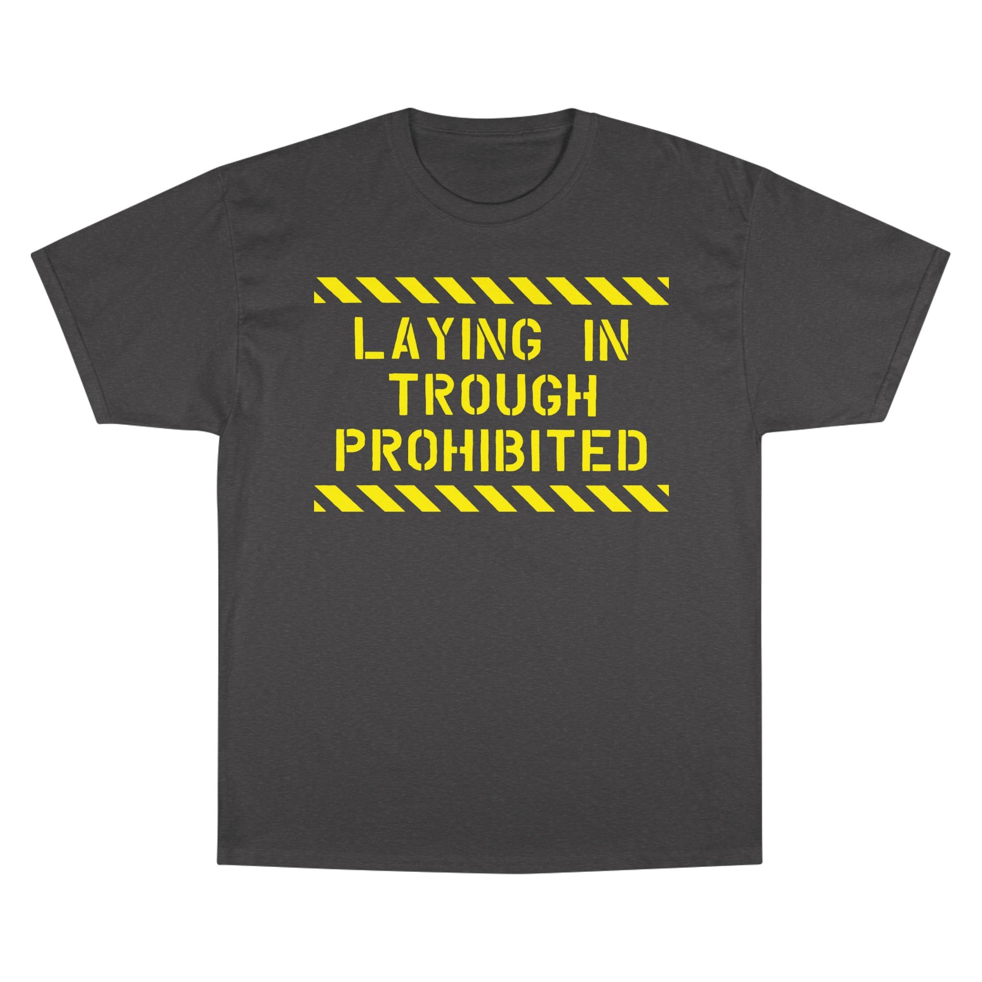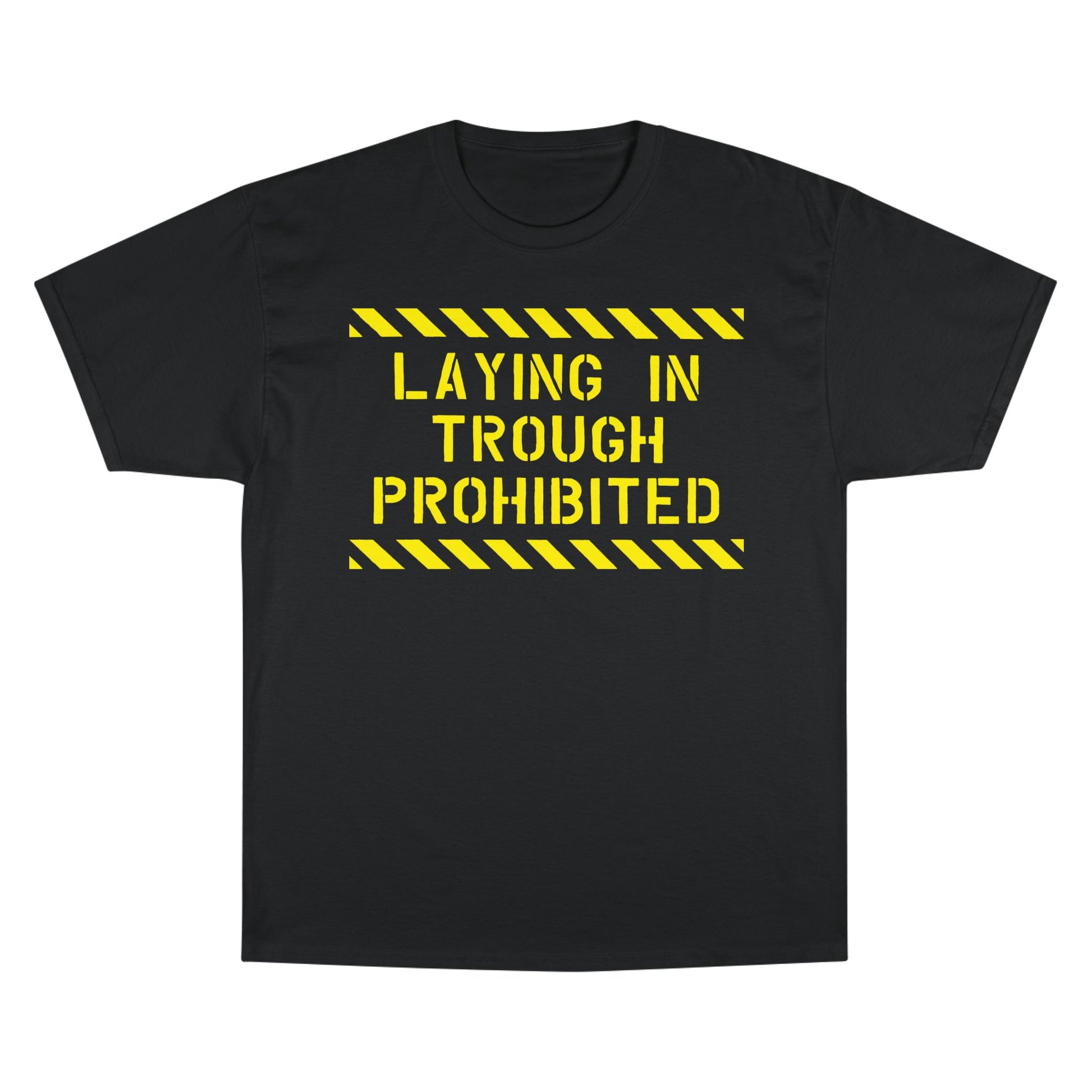 "Laying in Trough Prohibited" - Tshirt with Yellow deco