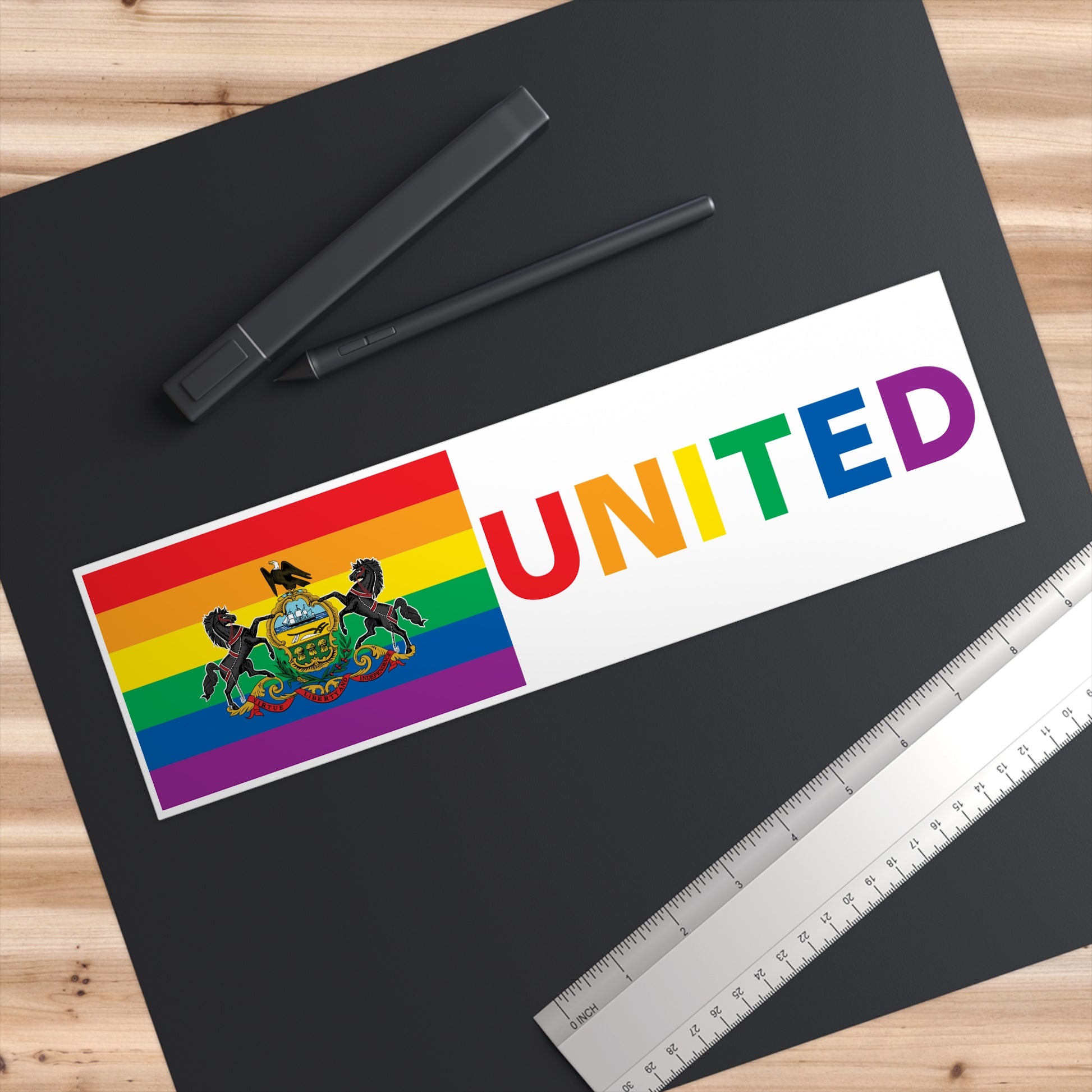 Pennsylvania Rainbow Pride Flag "UNITED" Bumper Sticker
